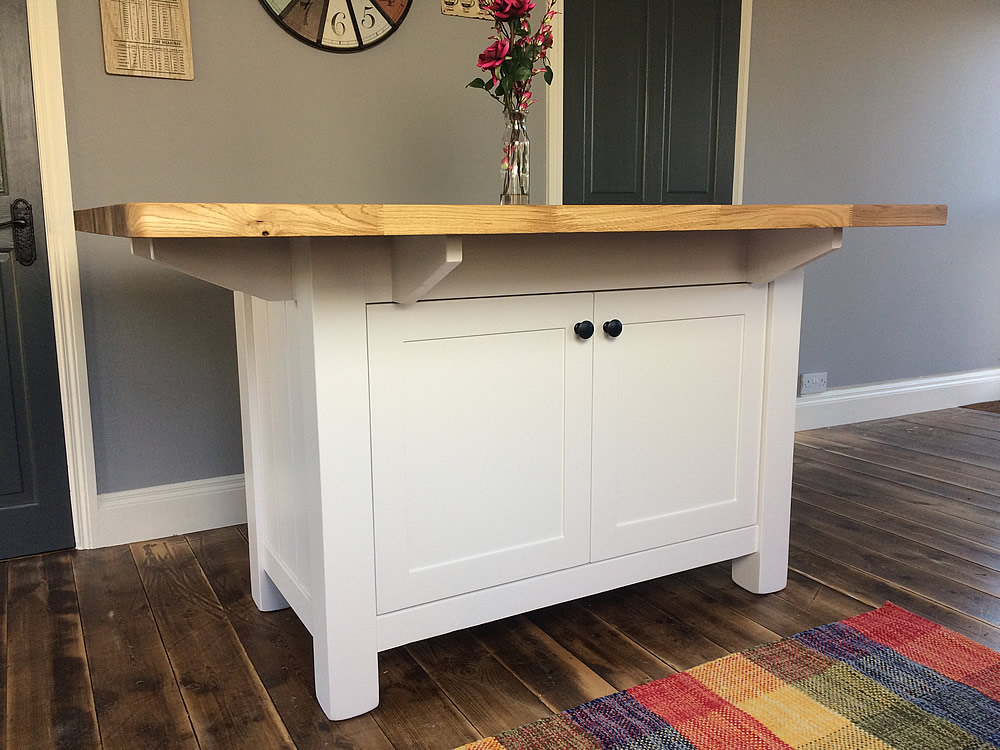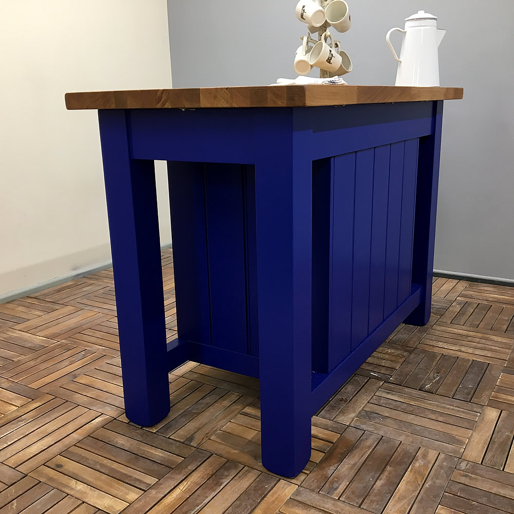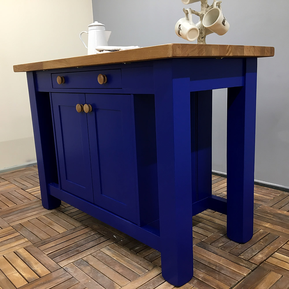 Freestanding kitchen islands can be an integral part of a kitchen design. They bring style and practicality to any kitchen space, a place to sit and socialize or just have your morning cup of coffee. Also they can provide an additional worksurface and space to prepare those lovely meals. Our kitchen islands can be made to any design, size & shape to suit your individual needs & they may be painted in any colour of your choice from any of the main manufacturers such as Farrow and Ball, Little Greene, Dulux etc.