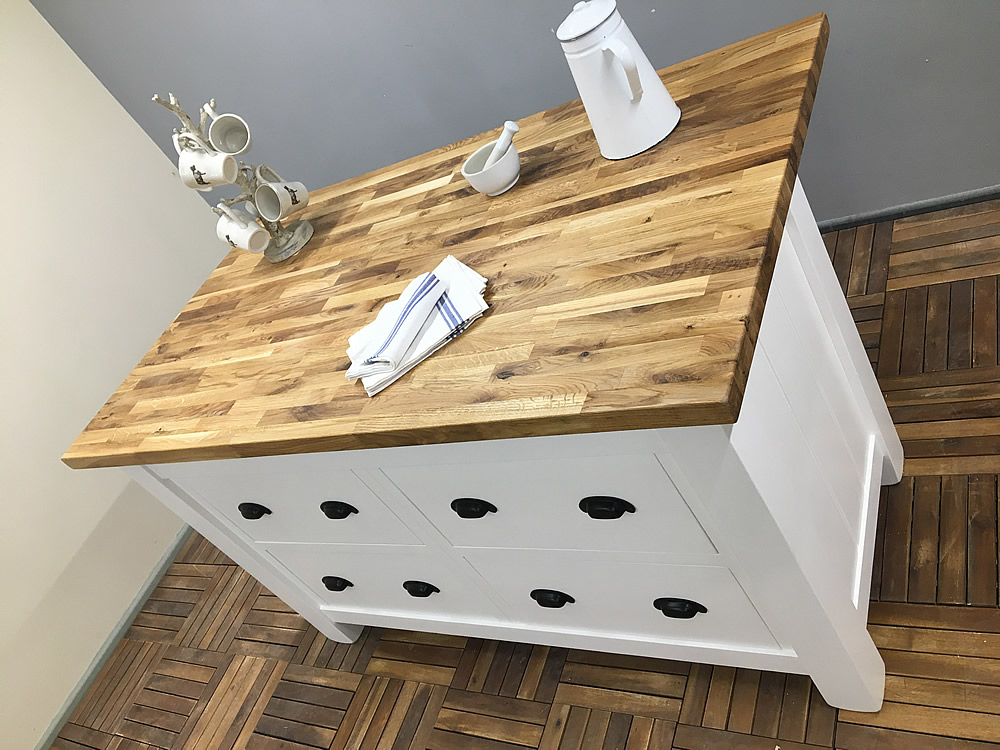 Our free standing kitchen islands are carefully handcrafted in solid pine with a choice of 40mm thick Oak, Beech, Maple, Ash or Iroko hardwood worktop. All islands are constructed using 95mm corner posts with the side & end the rails are fully mortise & tenon jointed to them. All cupboards are solid timber throughout as are all drawers which also benefit from being fully dovetail jointed. All painted finishes consist of a primer/undercoat & two top coats. All hardwood worktops come pre-oiled with at least 3 coats of Danish oil.